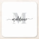 Posavasos Cuadrado De Papel Monograma Plata Blanco Negro Personal