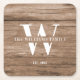 Posavasos Cuadrado De Papel Monograma Rústico Moderno Nombre de Familia Madera