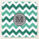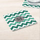Posavasos Cuadrado De Papel Monograma Turquesa y Mint Chevron Zigzag
