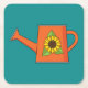 Posavasos Cuadrado De Papel Naranja regando lata con girasol