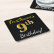 Posavasos Cuadrado De Papel Negro, Faux Gold 9Cumpleaños + Nombre Personalizad