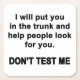 Por el amante del sarcasmo en todos nosotros. Echa un vistazo a este ingenioso "Te pondré en el maletero y ayudaré a la gente a buscarte. No me pruebes". Diseño de prendas y regalos.
