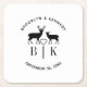 Posavasos Cuadrado De Papel Nombre de Pareja Ciervo Monograma Boda Rústica Cam
