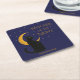 Posavasos Cuadrado De Papel Observador de la noche - Gato negro de Halloween