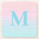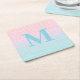 Posavasos Cuadrado De Papel Ombre azul rosado con monograma de líneas doradas