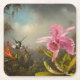 Posavasos Cuadrado De Papel Orquídea con dos Hummingbirds Heade