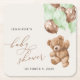 Añada un toque personal a la celebración de la ducha de bebé con estos artículos fiestas de diseño e inolvidables. El diseño presenta un oso de peluche con globos verdes de fondo beige.