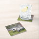 Posavasos Cuadrado De Papel Paisaje de ovejas al acuarela