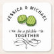 Personalice estas tardes humorísticas con los nombres de usted y de su cónyuge. El diseño presenta dos rodajas de encurtido con las palabras "en un pepinillo, juntos".