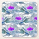 Posavasos Cuadrado De Papel Patrón de flores grises y púrpuras