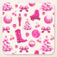 Posavasos Cuadrado De Papel Patrón de Navidades rosados con adormidera