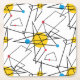 Los ángulos lineales negros y los círculos en colores primarios de rojo, amarillo y azul componen este patrón retro contemporáneo que recuerda al diseño moderno de mediados del siglo XX y la era atómica de los años 50 y 60.