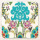Posavasos Cuadrado De Papel Patrones florales Damask Plum Turquoise