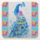 Posavasos Cuadrado De Papel Peacock Blue Bird Watercolor Aqua Rosa de montaña