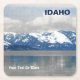 Mirando al este desde Sandpoint, ID a través del lago Pend Oreille (laguna oh-ray) en un día de invierno; montañas cubiertas de nieve a lo lejos. El hielo se ha formado en la orilla y se extiende a lo largo del lago. El azul y el gris son los colores predominantes. También aparece un texto de personalizable que dice "IDAHO"; y hay un lugar adicional para añadir más texto.
