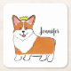 Posavasos Cuadrado De Papel Perro corgi real personalizado