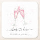 Las elegantes y festivas posavasos para su fiesta de compromiso o boda cuentan con un par de copas de champán en acuarela, llenas de burbujas rosas. Personaliza con dos líneas de texto personalizado debajo; mostradas con "ovaciones para amar" y los nombres de la pareja.