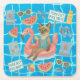 Pool Birthday Party for Cat Lovers Square Paper Coaster
