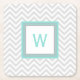 Prácticos de costa elegantes del papel de tablero de la pulpa hechos en un modelo blanco y gris claro del galón. La casilla blanca de la aguamarina, gris y, en el medio del práctico de costa, tiene aguamarina un monograma de la letra listo para personalizar. Grande para en cualquier momento utilice y hace una idea del bonito regalo.