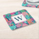 These tropical inspired monogrammed paper coasters feature a preppy pattern of pineapples in shades of pink, teal and navy blue. Personalize the monogram with your choice of initial.