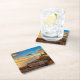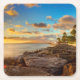 Posavasos Cuadrado De Papel Puesta del sol del océano sobre las rocas y la
