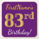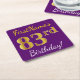 Posavasos Cuadrado De Papel Purple, Faux Gold 83rd Birthday + Custom Name