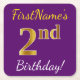 Posavasos Cuadrado De Papel Púrpura, Faux Gold Segundo cumpleaños + Nombre per