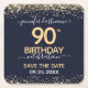 Elegante purpurina de oro de Faux con brillantes notas de confeti en el borde superior e inferior. Todo el texto es ajustable y fácil de cambiar para sus propias necesidades fiestas. Gran diseño elegante de plantillas de cumpleaños 90. Guarda el recordatorio de las tardes de bebida.