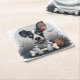 Posavasos Cuadrado De Papel Quirky Halloween Pup: Perro visto con baloncesto