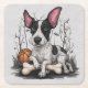 Posavasos Cuadrado De Papel Quirky Halloween Pup: Perro visto con baloncesto