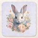 Posavasos Cuadrado De Papel Rabbit Surrounded by Pastel Flowers Cute