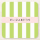 Posavasos Cuadrado De Papel Rayas verdes, líneas, patrón rayado, nombre