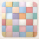 Esta imagen abstracta es un patrón visualmente llamativo de una pared de azulejos cuadrados. Las plazas están dispuestas en una cuadrícula regular y cuentan con una agradable paleta de colores pastel en tonos rosa, naranja y verde. El sutil efecto 3D de las baldosas y su acabado mate texturado crean un diseño de fondo limpio y moderno.
