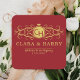 Posavasos Cuadrado De Papel Romantic gold red elegant calligraphy wedding