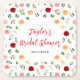This beautiful and elegant coaster features watercolor red, pink and orange roses with foliage. The text combines handwritten script and serif fonts for a stylish and modern look. This is perfect for a summer rustic bridal shower.