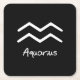 Posavasos Cuadrado De Papel Rótulo Aquarius Zodiac sobre fondo negro