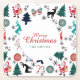 Estas galletitas de papel cuadrado de vacaciones cuentan con Santa Claus, renos, pinos, Mittens y copos de nieve sobre un fondo blanco. La tipografía "Feliz Navidad" está en rojo y verde. Puede personalizar el saludo y el nombre.