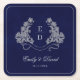Posavasos Cuadrado De Papel Servilleta de papel con monograma azul marino y cr