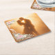 Posavasos Cuadrado De Papel Servilletas de boda con silueta dorada del atardec