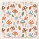 Patrón de caída adorable con hongos personalizados felices azul, naranja y marrón con mejillas rosadas y caras felices. Las hojas verdes, azules, naranjas y cremas también adornan este diseño. El fondo es un color crema claro para terminar este look de otoño.