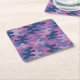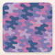This square coaster features a cute pink, lavender, blue and purple camouflage pattern. The camouflage design has cute geometric shapes like curvy puzzle pieces in it. The coaster is a square paper pulp coaster. There are six coasters in the coaster set. The coaster dimensions are 4" by 4". These coasters are tough, durable and absorbent. The coasters are perfect for parties, weddings, home use or branding your business.