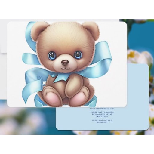 Posavasos Cuadrado De Papel Teddy Bear Blue Baby Shower