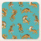 Posavasos Cuadrado De Papel Tigre sobre el patrón Verde azulado