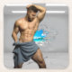 SlipperyJoe's Man Toalla rota pared de ladrillo blanco tórax torso músculos rotos piso ladrillo roto pared de la playa tropical barba de la playa soñar artístico orgullo gay regalos LGBTQIA sombras grises azul blanco efecto visual único