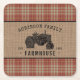 Posavasos Cuadrado De Papel Tractor Rústico de granja familiar Red Plaid Burla