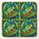 Posavasos Cuadrado De Papel Tropical-themed coasters with vibrant green leaves