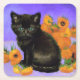 Posavasos Cuadrado De Papel Van Gogh Black Kitten con girasoles