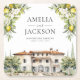 Este diseño presenta una hermosa villa italiana adornada con limones, aceitunas y flores blancas.