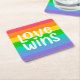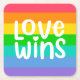 Esta obra de arte muestra un arcoíris colorido con las palabras Love Wins.