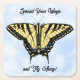 Personalize with your own expression, text or name on this design of a black and yellow Western Swallowtail butterfly, one of the most beautiful large butterflies in the world, floating on a blue sky with puffy white couds. My original painting is based on photographs I took in my own butterfly-friendly garden in the Southwest. You can customize this design by removing the sky background or replacing it with a color.